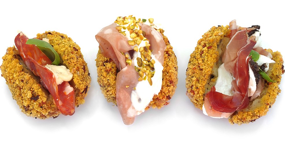 Patate schiacciate a mano, mozzarella fiordilatte filante avvolte in una ESCLUSIVA PANATURA EXTRA CROCCANTE.